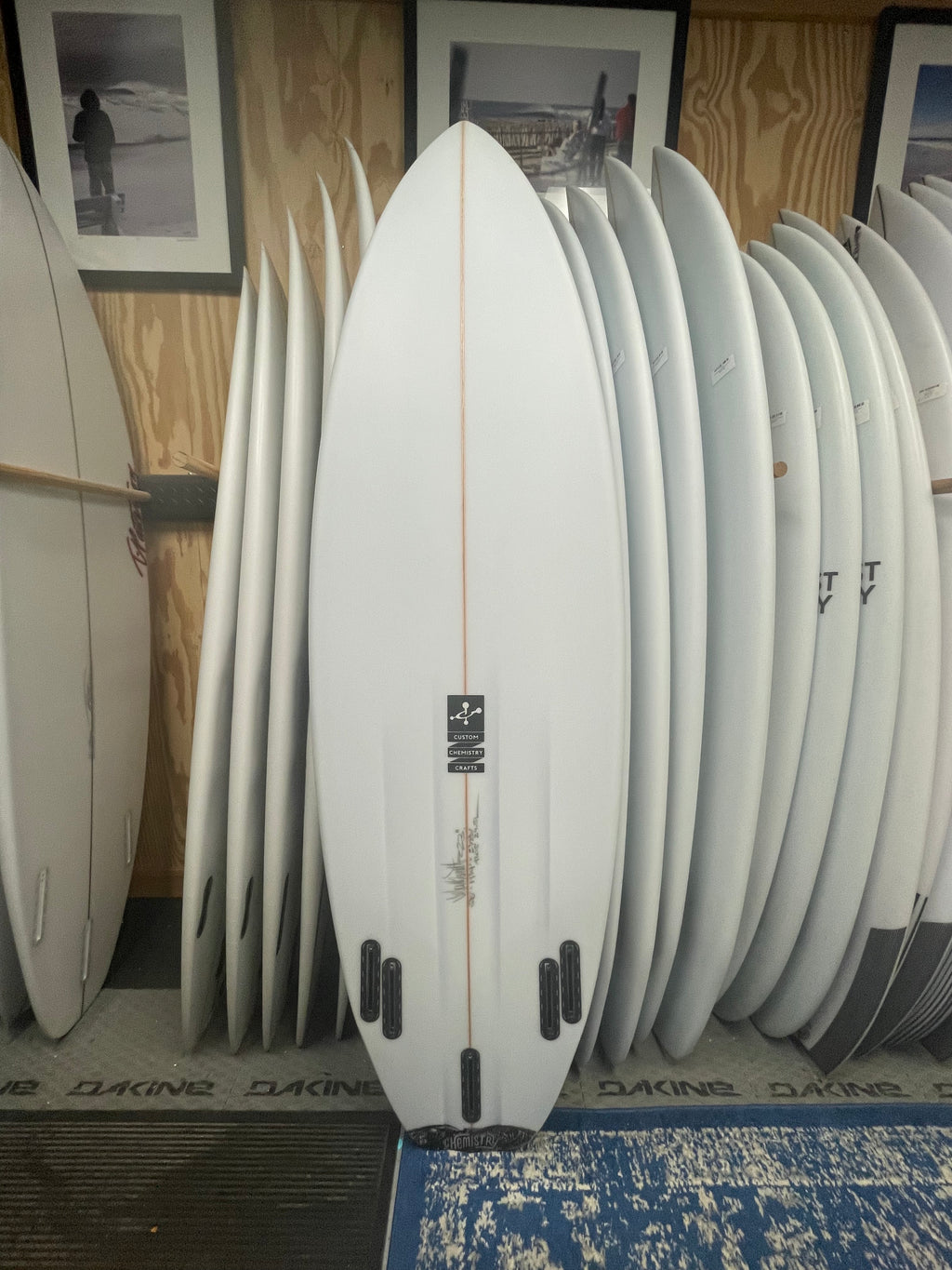 Fresh out the shaping bay we proudly present The 23, the ultimate two in one surfboard. The 23 is a performance hybrid that can be ridden as a proper thruster or twin fin setup. With precise fin marks and routes, the fin placement is not compromised. The 4 belly channels are placed for stability and speed, while the center channel fades at the 12" mark then abruptly reemerges to give the board a boost of energy. With this recession proof board model you’re bound to have fun in twin fin style surf and have the ability to ride it as a thruster to get the most performance out of your surfing.