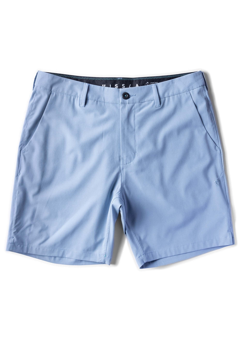 4 -Way stretch quick dry textured fabric with recycled poly Repreve. Style features tow back pockets with zipped closure on wearers left. Side slash pockets with mesh lining. Chambray lined waistband with center front button closure and locking coil zipper at fly.