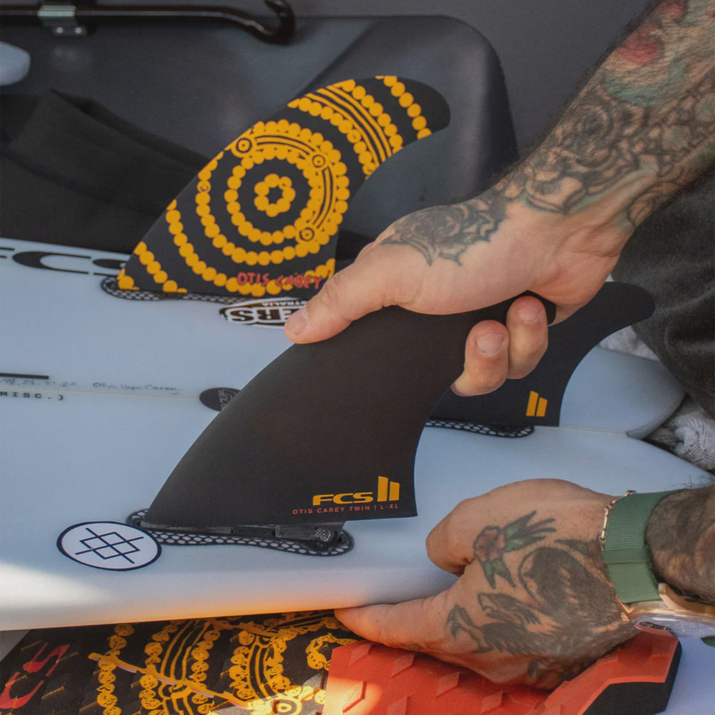 Designed in collaboration with Harley Ingleby, the Power Twin has become one of the most popular templates in this ever-growing category. The Otis Carey signature Power Twin features his indigenous artwork that also appears on his signature FCS traction pad.