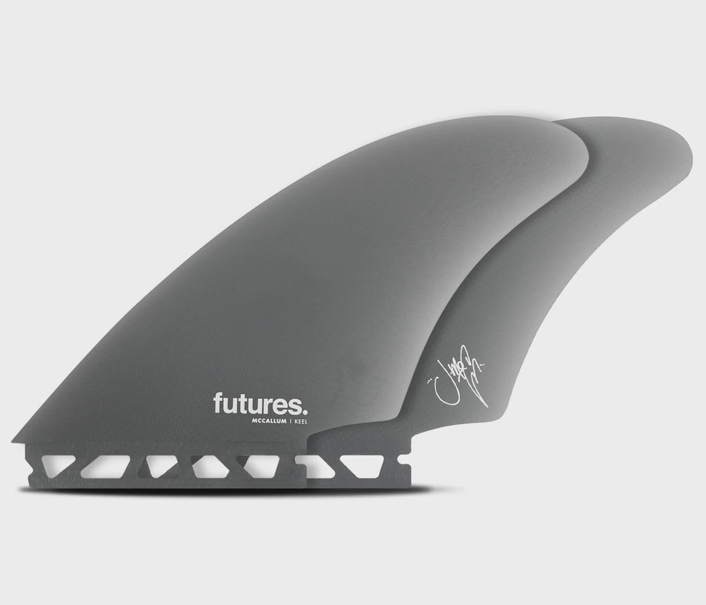 The McCallum Keel fin was designed by Jeff McCallum to complement any retro twin fish. The template features an elongated profile and rake, with a wider base for smooth down the line speed and control.