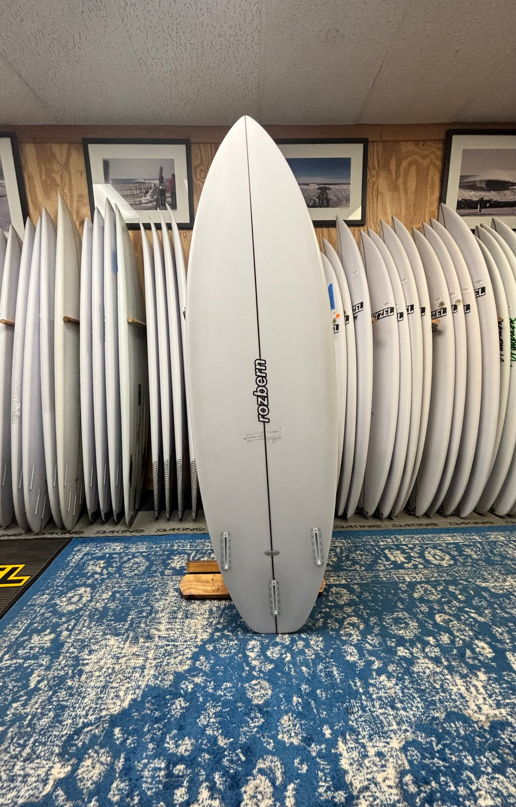 6' x 19 1/4" x 2 9/16" 32.6 liters, squash poly, clear, Futures Fins tri fin