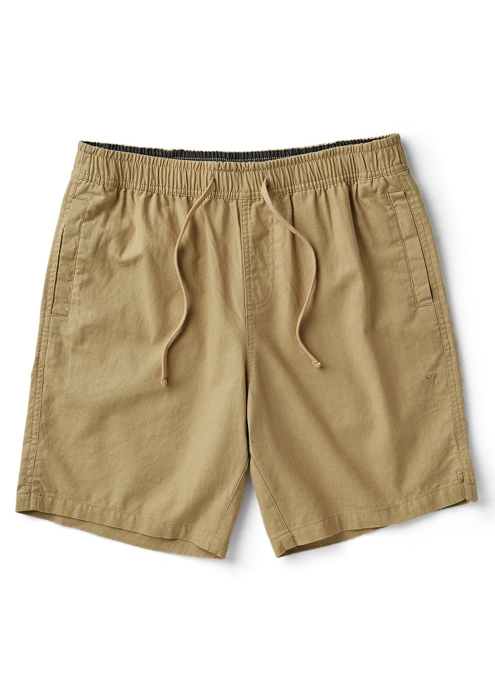 Linen fabric. Style features button down back pocket and on seam welt side pockets. Center front tethered waistband closure