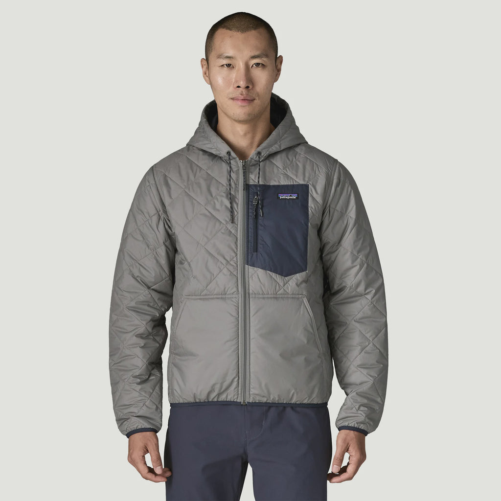 Attached, insulated, three-piece hood adjusts with a drawcord; a full-length, center-front zipper operates with a climbing-rope zipper pull that's easy to use even when wearing gloves