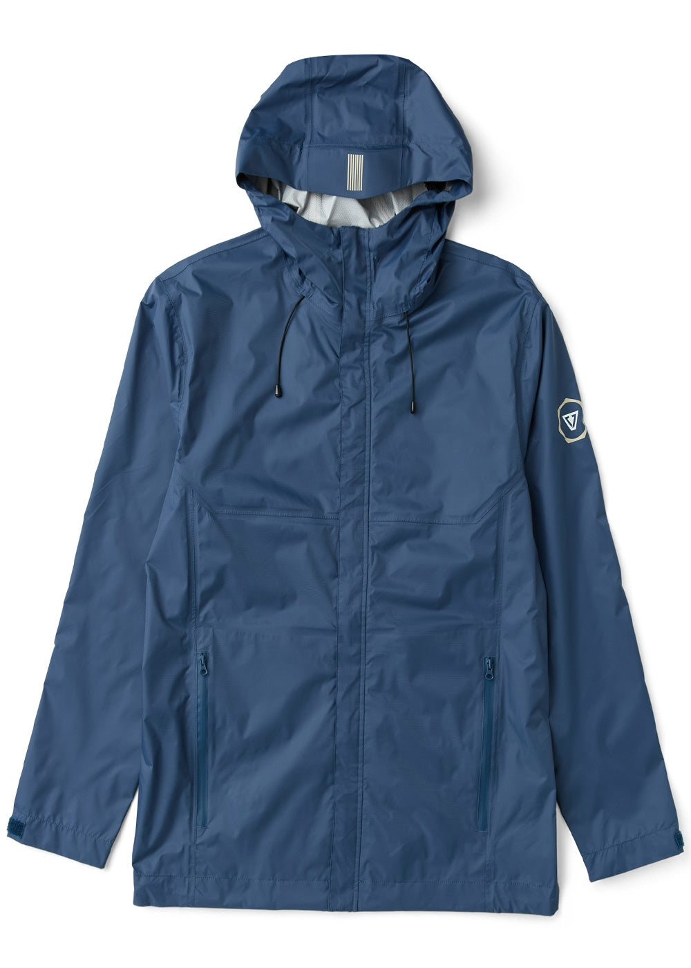 100% Nylon 2 layer 5k waterprook shell hooded jacket. Styling includes vertical welt water resistant zippers" front storm flap" laser cut vent holes at arm pits.