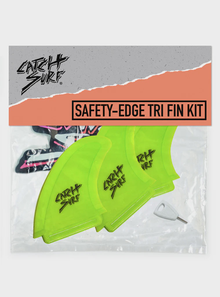 Offers a safer fin option. Stiffer inner core with soft rubber edge. Includes three 4.5" safety-edge fins, fin key and C/S sticker. Designed in California, U.S.A. by Catch Surf.