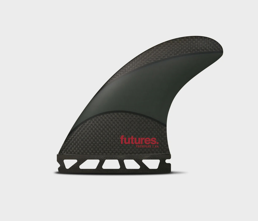 The EA Techflex, designed by Hawaiian shaper Eric Arakawa of Arakawa Designs, is a medium size thruster in the Rake template category. The Techflex construction and flat foil give this fin a stable feel, making it ideal for controlling speed in more powerful waves. Over 40 years of surfboard design won't do you wrong, trust Arakawa when the waves get interesting.