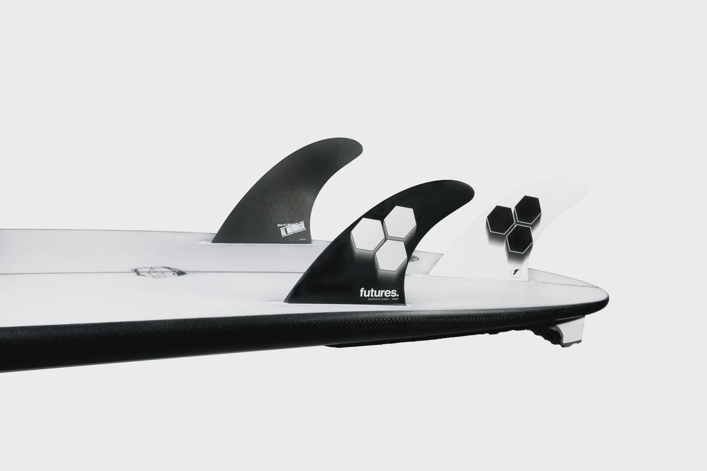 The AM2 Honeycomb designed by legendary shaper Al Merrick of Channel Islands Surfboards, is a large size thruster in the Rake template category. Featuring a balanced flex pattern, this fin's wider base provides increased drive through turns, making it ideal for high performance surfing. The center fin is smaller than the side fins for increased maneuverability.