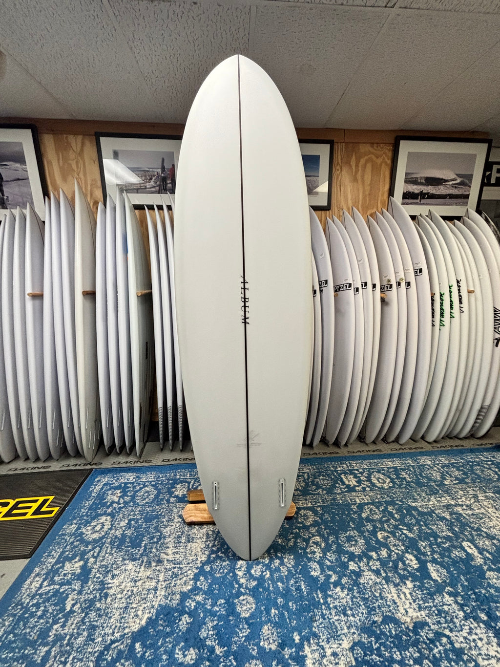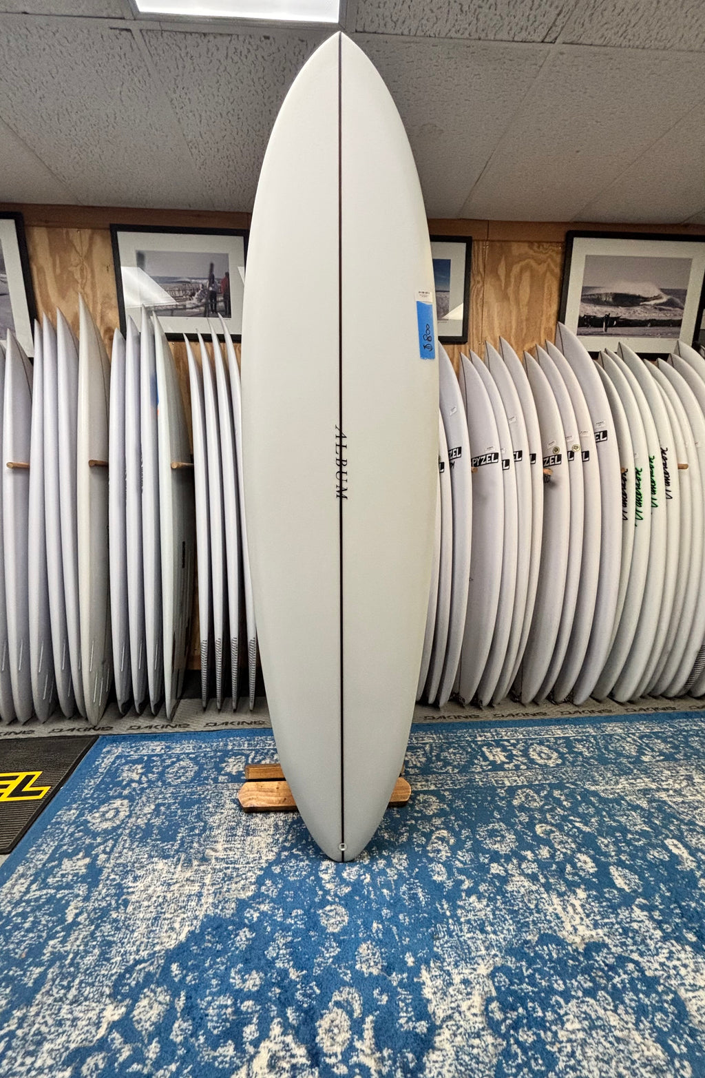 ON SALE due to minor cosemtic shipping damage on bottom of board near fins. Fully repaired, with just a touch of yellowing. This board is not available to ship, store pick up only