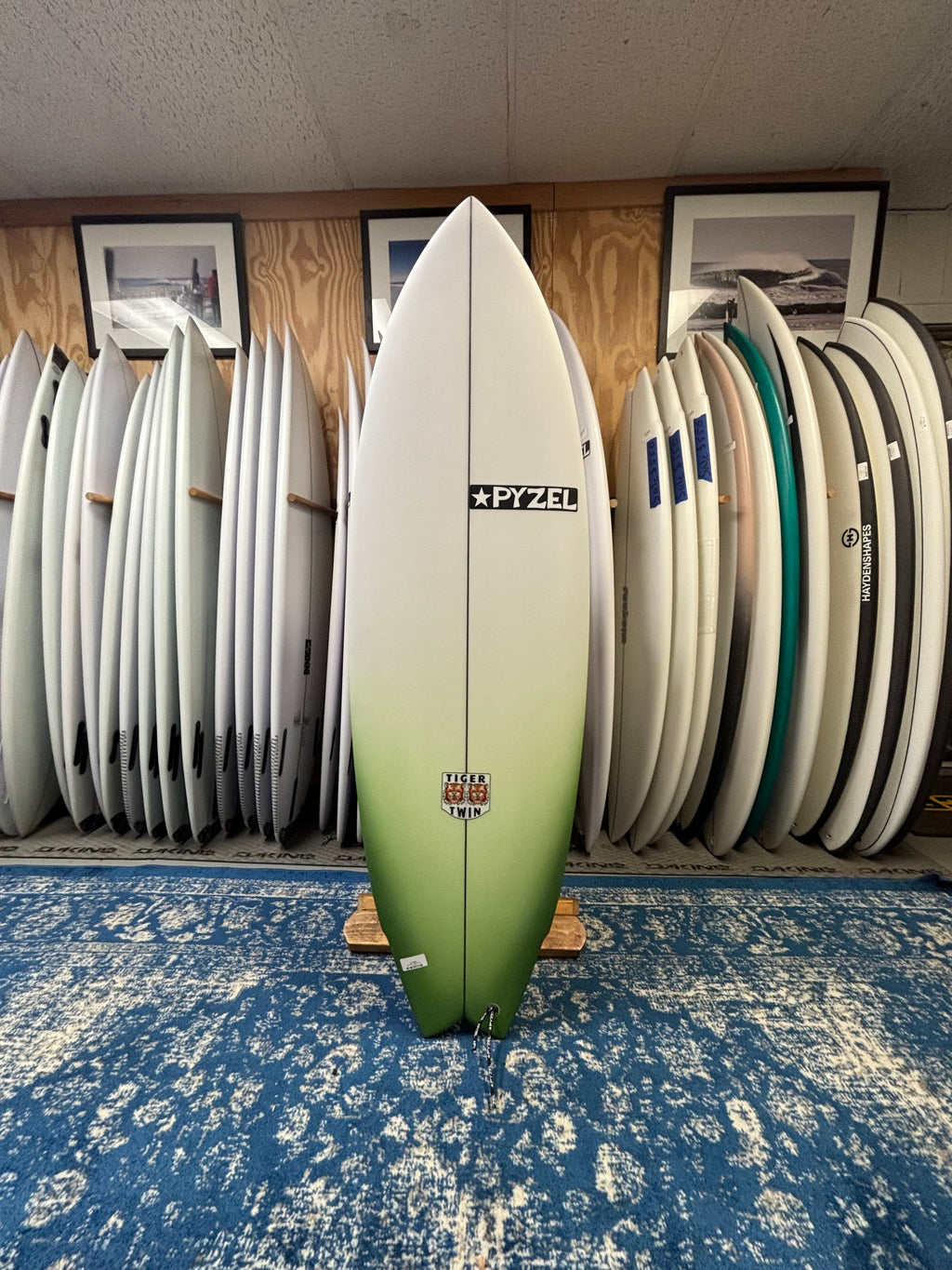 ntroducing the Tiger Twin (2+1), the newest addition to the Pyzel Tiger Series. Originally designed for easy speed in weaker waves, the Tiger Twin is a special blend of two of our most loved smaller wave designs, the Happy Twin and the White Tiger. Both of these models have been favorites of our customers and team for years.