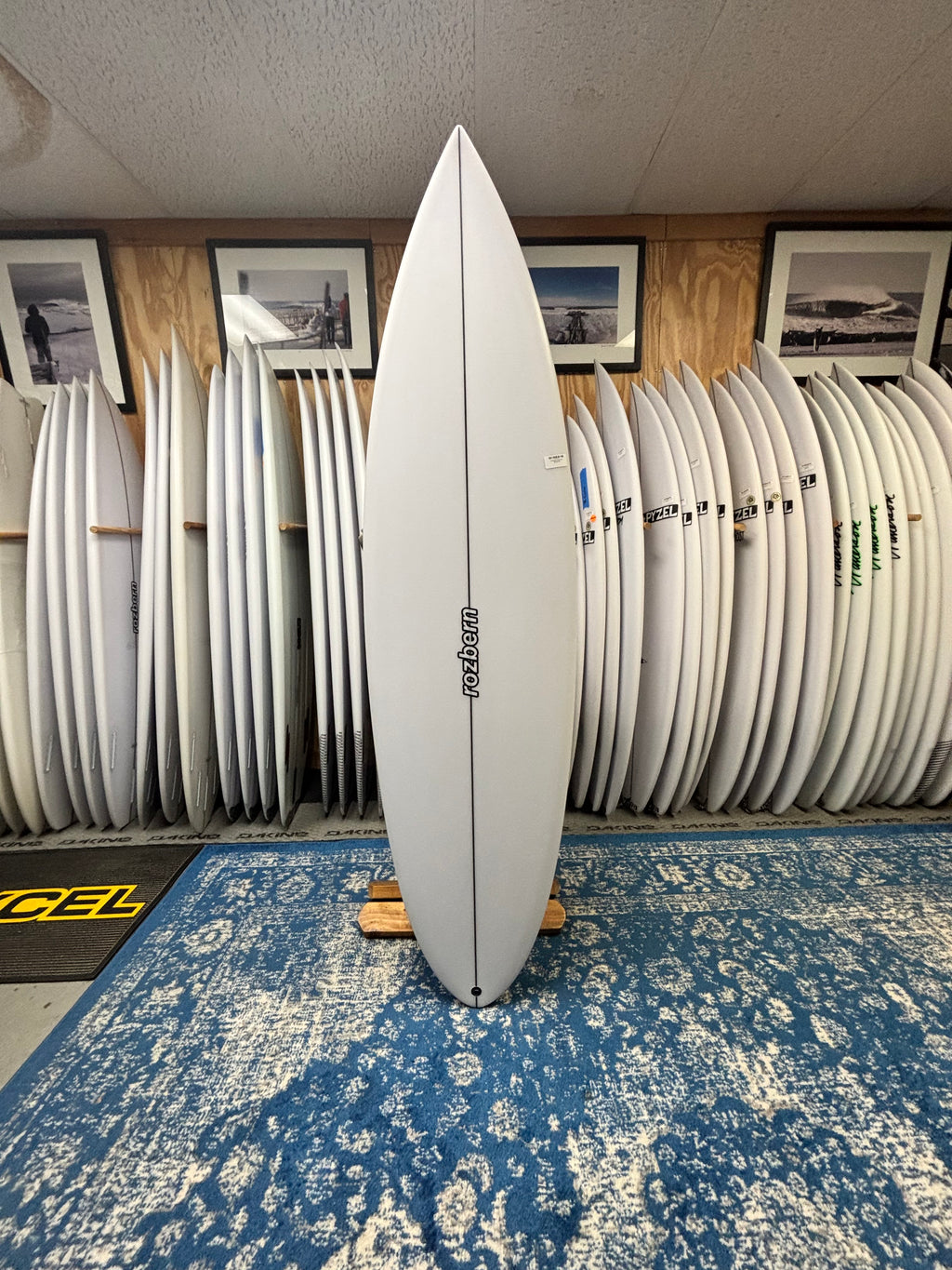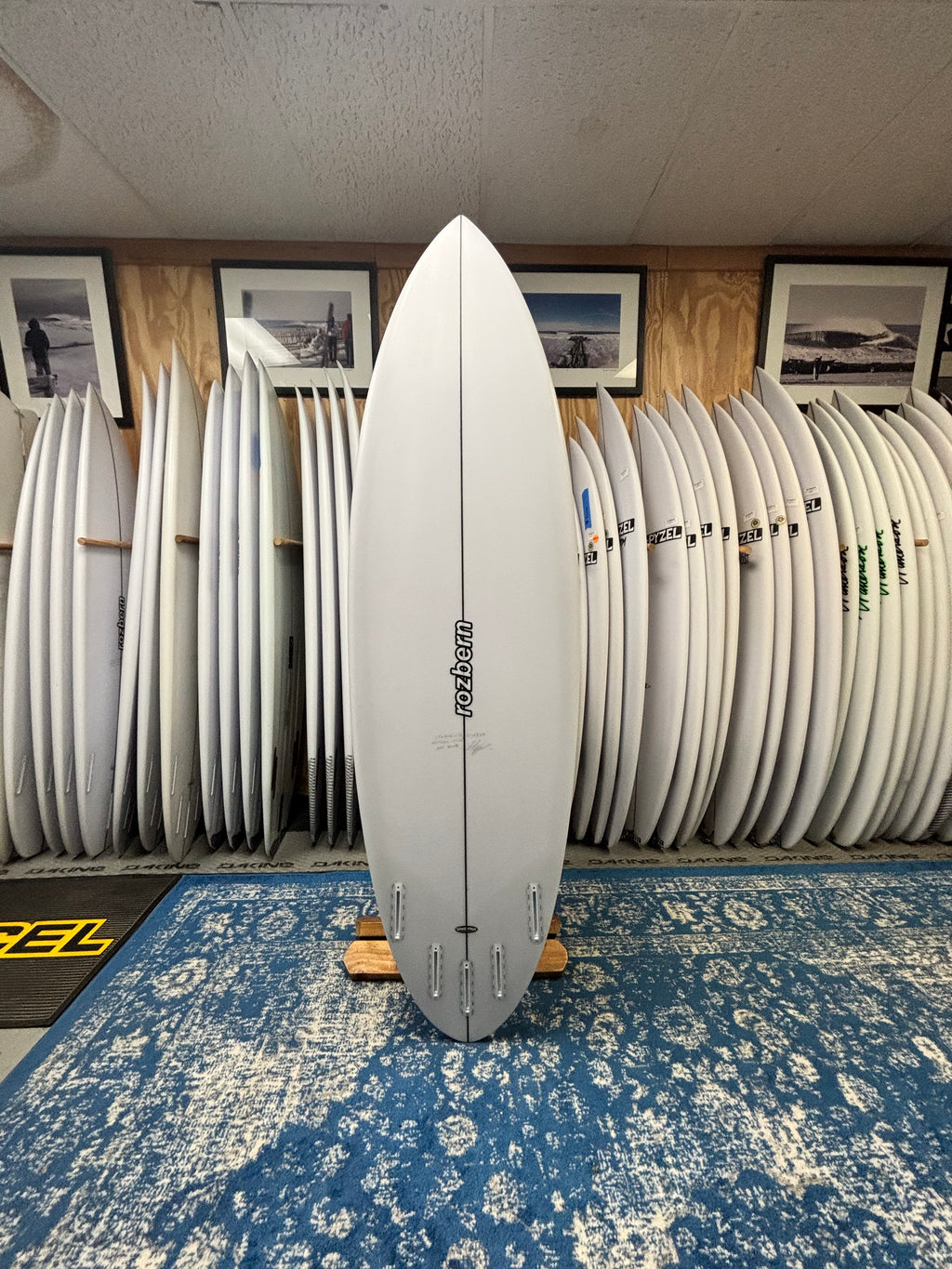 6'4" x 19 11/16" x 2 5/8", 36.5 liters, R.Pin, poly, clear, Futures Fins five fin