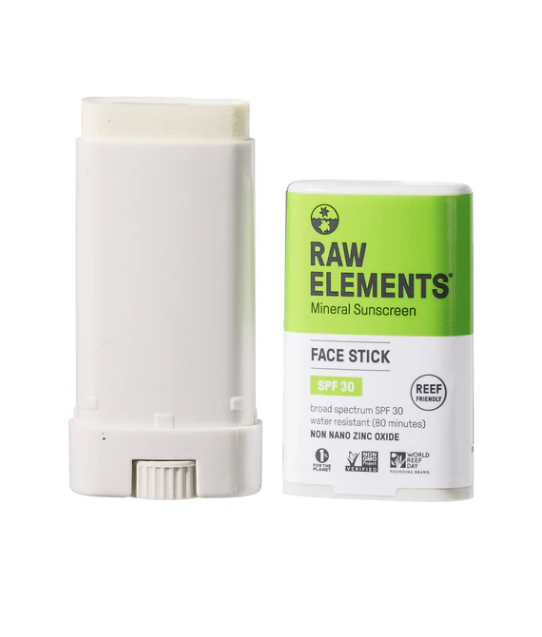 Raw Elements SPF 30 Face Stick is the perfect spot application solution for your serious sun protection needs. This handy stick not only provides water-resistant, balanced UV physical protection, lasting beyond 80 minutes, but it’s also uniquely designed to be applied underwater to your face! With the easy applicator, you have the flexibility to wear it heavy and opaque or rub it completely into your skin for a seamless finish.