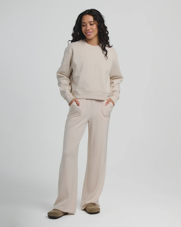 W Bamboo LW Fleece Wide Leg Pnt-STN