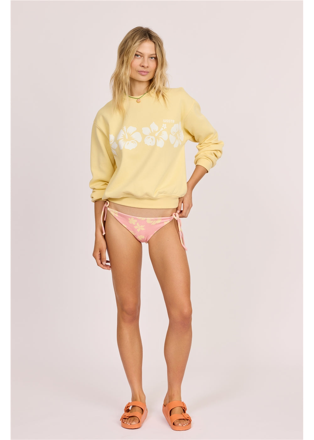 Brushed back crew neck fleece with a slight blousant look to the body and graphics on bodice and sleeves