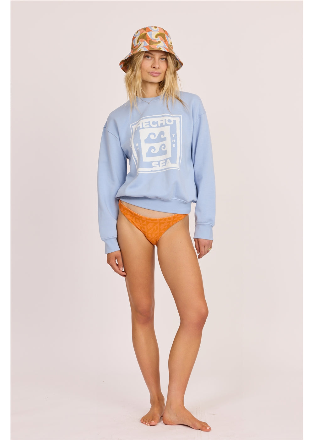Crewneck brushed back fleece with graphics and slight drop shoulder
