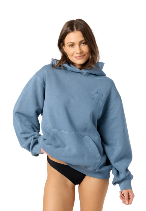 Women's Oversized Pullover Hooded Sweatshirt100% Cotton Fleece, Weight 400 GSM26''' HPS LengthGarment Pigment DyeLogo Embroidery on ChestRib Cuffs, Rib Hem, Kanga Pocket