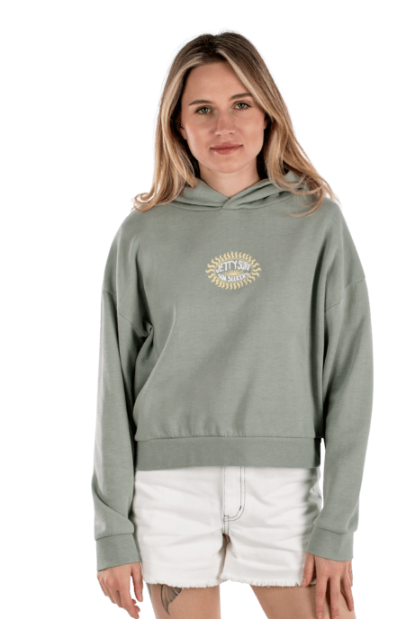 52% Cotton, 48% Polyester Details:Boxy FitWave Wash Garment Wash For Softness and Unique ColorSet-In SleevesNo DrawcordBlind Stitch1x1 Ribbing At Waist And SleevesTwill Neck TapePrinted With Water-Based Discharge InkDesigned & Printed In New Jersey / Jetty HQ